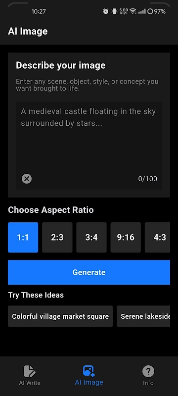 แอปนี้ได้รับการออกแบบมาให้เรียบง่ายและมีประสิทธิภาพ เพียงแค่แตะไม่กี่ครั้ง คุณก็สามารถป้อนคำสั่งและดูเครื่องสร้างภาพ AI สร้างงานศิลปะอันมหัศจรรย์ ในขณะเดียวกัน เครื่องสร้างแชท AI ของคุณก็พร้อมเสมอที่จะมีส่วนร่วมในการสนทนาที่มีความหมายหรือสนุกสนาน