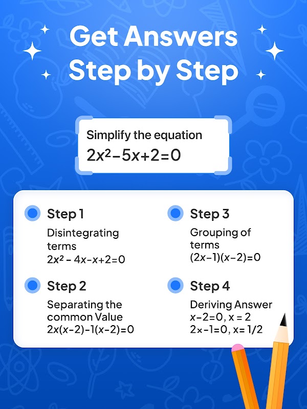 การเรียนรู้เป็นเรื่องง่ายด้วย AI Solver เพียงถ่ายรูปคำถามของคุณ แล้วอินเทอร์เฟซที่ใช้งานง่ายของเราจะแนะนำคุณตลอดคำอธิบายโดยละเอียดและคำแนะนำแบบภาพเคลื่อนไหว ค้นพบว่าการบ้านนั้นสนุกและน่าดึงดูดขนาดไหน!