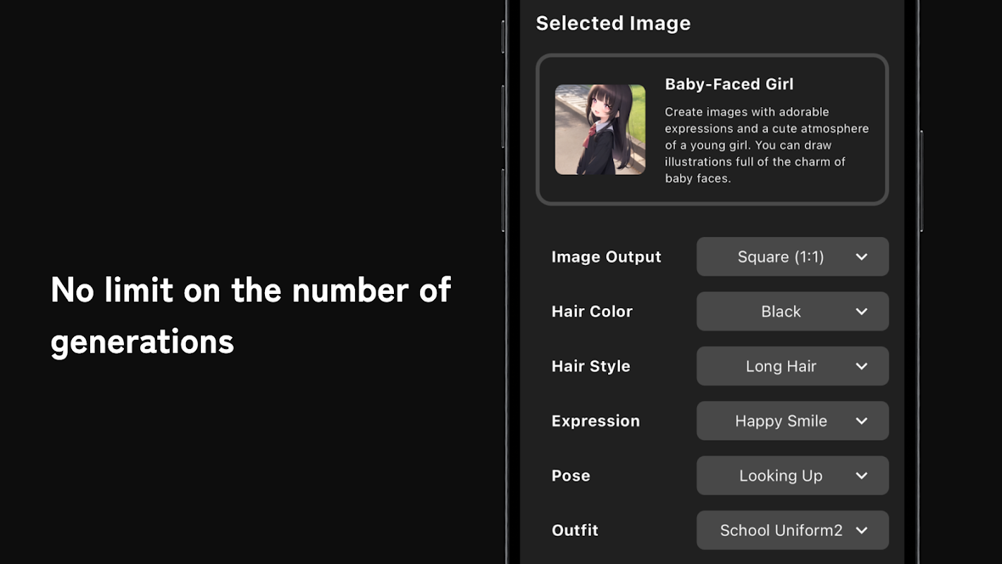 ใช้งานง่าย: ไม่ต้องตั้งค่าที่ซับซ้อนหรือเขียนข้อความทันที เพียงเลือกองค์ประกอบที่คุณชื่นชอบจากตัวเลือกการเลือก และสร้างตัวละครได้อย่างง่ายดาย
