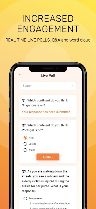 - มีส่วนร่วมกับผู้เข้าร่วมประชุมของคุณในเวลาจริงผ่านการเลือกตั้งสด Q & A และผลักดันการแจ้งเตือน