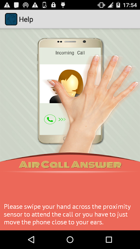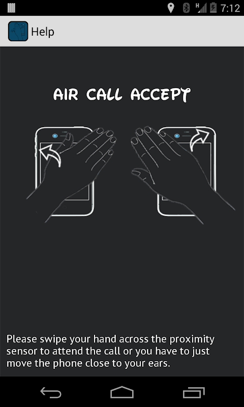 คุณสามารถรับสายกับโปรแกรมนี้เมื่อใดก็ตามที่คุณไม่สามารถสัมผัสหน้าจอ โดยเพียงแค่ให้ท่าทางอากาศที่คุณสามารถรับสายของคุณ นี้เป็นเช่นเดียวกับในการโทรทางอากาศได้รับ