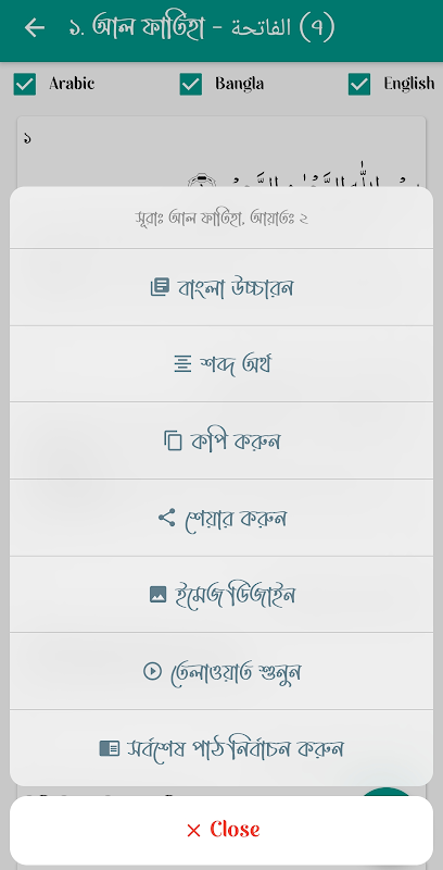 . অর্থ । (আয়াতের ওপর ট্যাপ করে ধরে রাখুন)