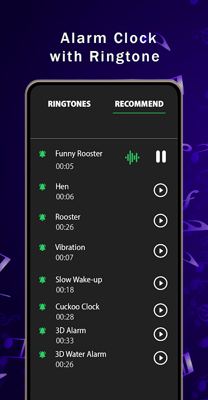 - Select the alarm sound you want from all your phone's ringtones, songs and sounds. Wake up to your favorite music!