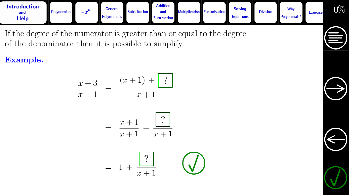 แบบฝึกหัดคณิตศาสตร์เชิงโต้ตอบสำหรับพหุนาม I