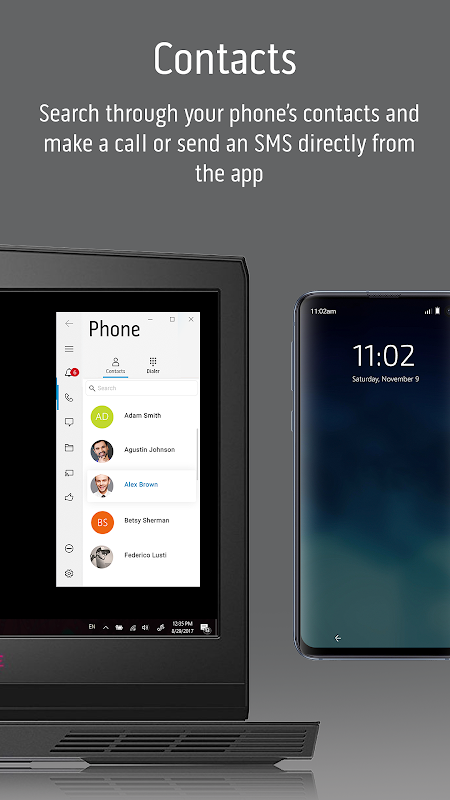 Alienware Mobile Connect minimizes distractions by allowing you to make calls, send texts, get notifications, transfer files and control your phone conveniently from your Alienware computer. Put your phone away and use it through your computer’s screen, touch, mouse or keyboard!