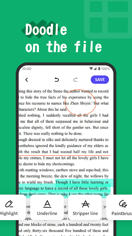 - มีเครื่องมือต่างๆ เช่น การไฮไลต์ ขีดเส้นใต้ และคำอธิบายประกอบสำหรับเอกสาร PDF เพื่อทำเครื่องหมายเนื้อหาสำคัญ