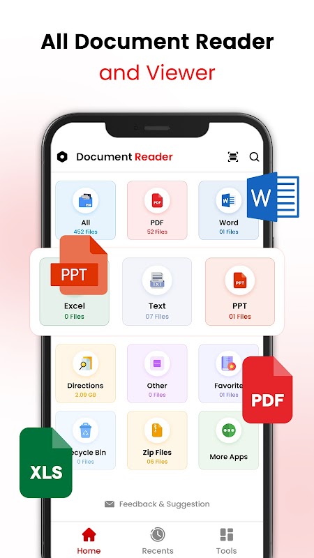 แอปนี้รองรับรูปแบบไฟล์ที่หลากหลาย (PDF, DOC, DOCX, XLS, XLSX, PPT, PPTX, TXT, CSV, ZIP, JPG, PNG และอื่นๆ) ทำให้ไม่จำเป็นต้องใช้แอปหลายแอปแยกกัน