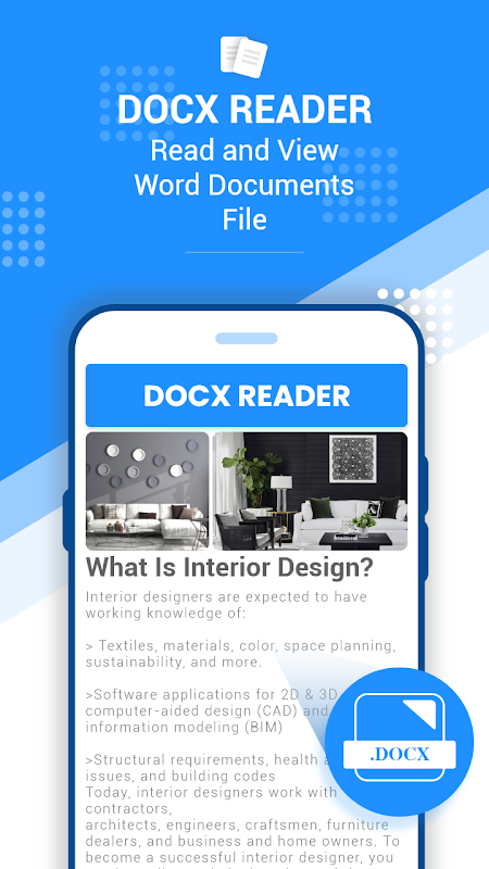 ✏. DOCX Files Reader: คุณลักษณะนี้มีประโยชน์มากสำหรับผู้ที่ต้องการดูและอ่านเอกสารโดยไม่มีความซับซ้อน มันประมวลผลไฟล์ Docx เร็วมากแล้วเปิดหรือดูเอกสารของคุณ ตัวเลือกของแอปโปรแกรมอ่านเอกสารทั้งหมดนี้ให้คุณสมบัติทั้งหมดในการดูและอ่านเอกสารออฟไลน์บน office สำหรับ Android รวมถึง Docx และไฟล์คำออฟไลน์📁