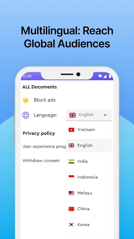 ลองใช้โปรแกรมอ่านและโปรแกรมดูเอกสารทั้งหมด โปรแกรมดูไฟล์แบบออลอินวันนี้สามารถใช้งานร่วมกับไฟล์ Office ทั้งหมดได้อย่างสมบูรณ์แบบ ช่วยให้คุณประมวลผลไฟล์ในทุกรูปแบบได้อย่างง่ายดาย เช่น PDF, DOC, DOCX, XLS, XLXS, PPT, TXT ฯลฯ สามารถสแกนไฟล์ในโทรศัพท์ของคุณโดยอัตโนมัติ จัดระเบียบไว้ในที่เดียวเป็นโฟลเดอร์ที่เกี่ยวข้อง เพื่อให้คุณสามารถค้นหาและดูได้อย่างสะดวก