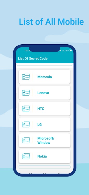 คุณสามารถพิมพ์รหัสลับด้วยตนเองบนแป้นหมุนโทรศัพท์โดยอ่านรหัสจากแอพหรือคุณมีตัวเลือกให้กดรหัสลับที่ต้องการจากแอพของเราโดยตรง คุณจึงมีข้อมูลอื่นๆ มากมายเกี่ยวกับจอแสดงผล แบตเตอรี่ ซอฟต์แวร์ ฮาร์ดแวร์ และอื่นๆ ที่เกี่ยวข้องกับโทรศัพท์มือถือของคุณ