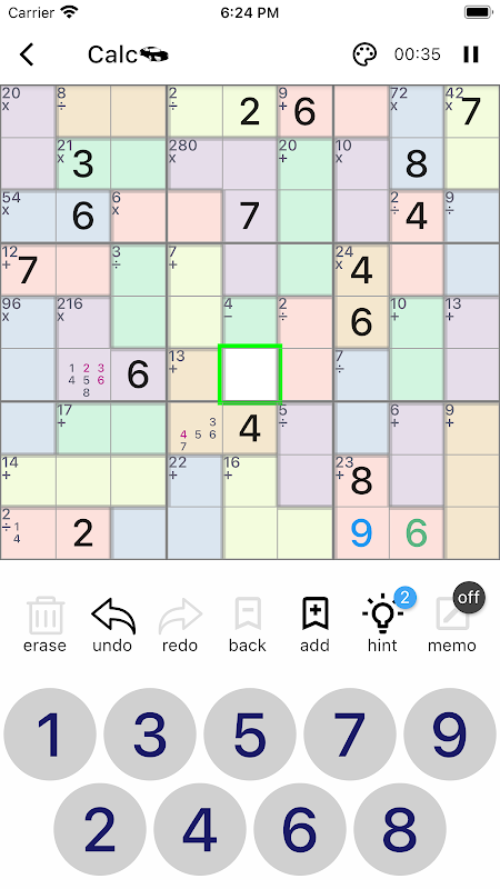 ✔ ซูโดกุเลขคณิต - ใช้การดำเนินการทางคณิตศาสตร์ เช่น การบวก ลบ และคูณ