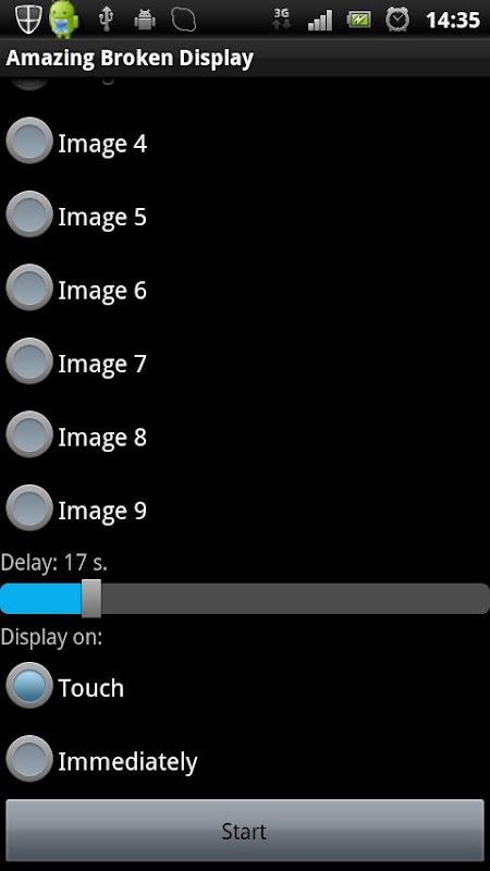 ทำให้ความสนุกออกมาจากเพื่อนของคุณด้วยโปรแกรมหน้าจอที่น่าตื่นตาตื่นใจนี้แตก เพียงแค่เรียกใช้ให้เลือกภาพที่คุณต้องการให้ปรากฏล่าช้าหลังจากที่ความคึกคะนองจะเริ่มต้นและประเภทของทริกเกอร์และให้คนที่โทรศัพท์ของคุณแล้วรอการตอบสนอง อย่าลืมที่จะเพิ่มระดับเสียง ด้วยการประยุกต์ใช้หน้าจอนี้เสียคุณสามารถหลอกคนอื่น ๆ ที่คุณมีโทรศัพท์มือหักหรือว่าพวกเขายากจนโทรศัพท์ของคุณ