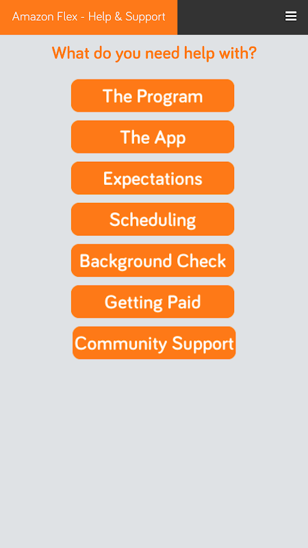 If you have a problem that isn't answered on the app you can use the community support section and post on our forums for further help and support. The community will try to help however, please refer to official Amazon Flex support for any problems relating to your account.