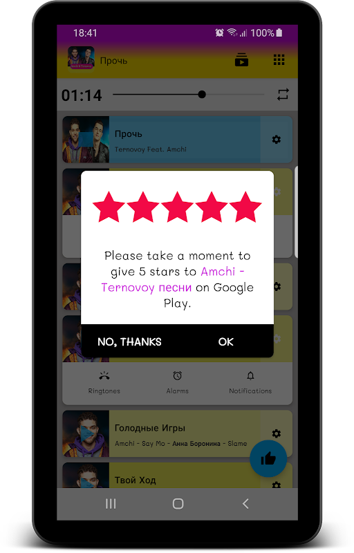 приложение "Amchi & Ternovoy песни - Прочь Не Онлайн" содержит лучшие песни Амчи и Терновой :