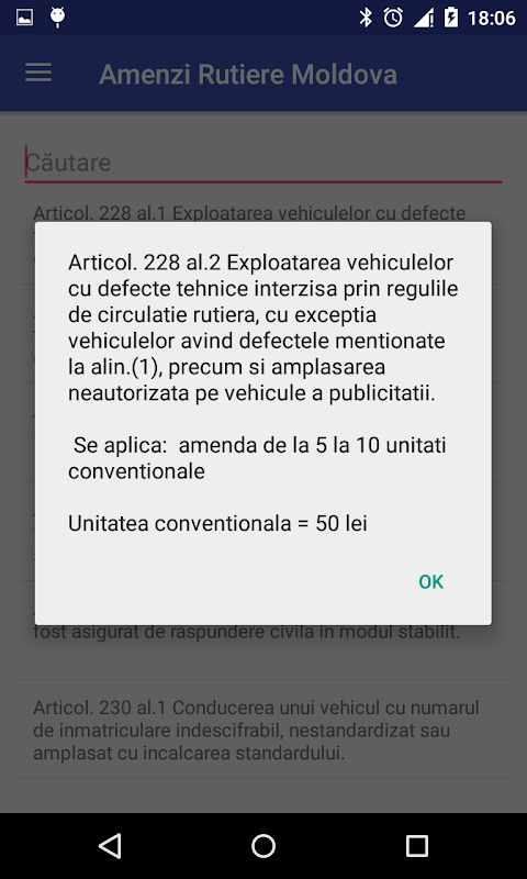 Aplicatia permite vizualizarea contraventilor circulatiei rutiere in Republica Moldova, e o aplicatie necesara fiecarui sofer, in primul rind o sa va improspatati cunostintele si veti sti care sunt consetintele incalcarii, si la intocmirea proceselor verbale o sa fiti la curent cu articolul si penalitatea infractiunii.