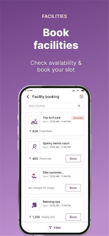 • จองสิ่งอำนวยความสะดวก เช่น สนามเทนนิส ห้องออกกำลังกาย คลับเฮาส์ ห้องจัดเลี้ยง ฯลฯ
