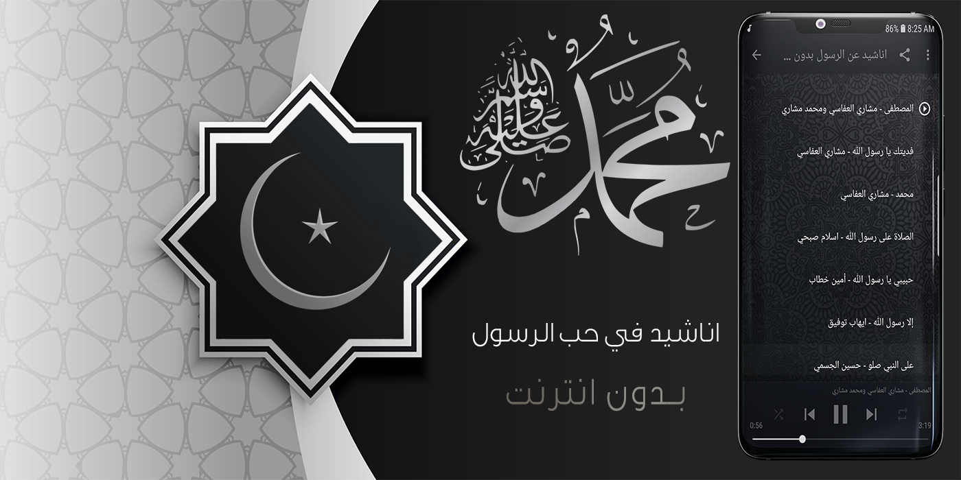 แอพพลิเคชั่นเพลงศาสนาเกี่ยวกับพระศาสดาเป็นแอพพลิเคชั่นในภาษาอาหรับทั้งหมด *