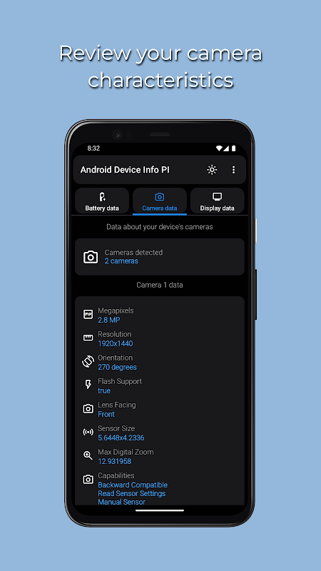 • ข้อมูลเซ็นเซอร์: ตรวจสอบเซ็นเซอร์ที่มีอยู่ในอุปกรณ์ของคุณ