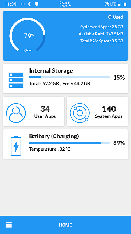 System Information: Android version, Android version name, Boot loader, Api level, Build ID, Build Time, Java VM details, OpenGL info, Kernel Information, Root access info, System up-time etc.