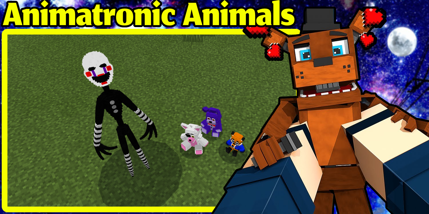 Animatronics mobs: Bonnie, Chica without a beak, JJ, Puppet, bi, ghosts, foxy and endoskeleton. There are also neutral cute teddy bear toys, but they are mostly used for home decoration and furniture. You can also scare your friends with them. Not only mobs, but also cool items from the fnaf universe will be added to the bedrock. If you go into creative mode, then you will not have enough inventory to add everything that will be added to it! Enter the game and change its difficulty to hardcore!
