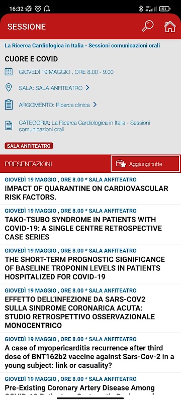 La funzionalità My Congress permette di salvare l’orario e la sala in cui si terranno le Presentazioni di proprio interesse.