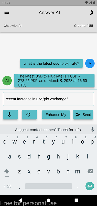 อินเทอร์เฟซการแชทช่วยให้คุณสามารถโต้ตอบกับ ANSWER AI ผ่านอินเทอร์เฟซการสนทนา พร้อมด้วยบอท AI ที่ได้รับการปรับปรุงซึ่งสามารถเข้าถึงข้อมูลแบบเรียลไทม์จากเว็บ
