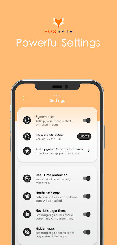 แอปสแกนเนอร์ Foxbyte Code Anti Spyware ปกป้องอุปกรณ์ของคุณด้วยการป้องกันแบบเรียลไทม์จากการติดเชื้อจากการติดตามการเฝ้าระวังการตรวจสอบและแม้แต่การโจมตีจารกรรมโดยไม่ได้รับอนุญาต