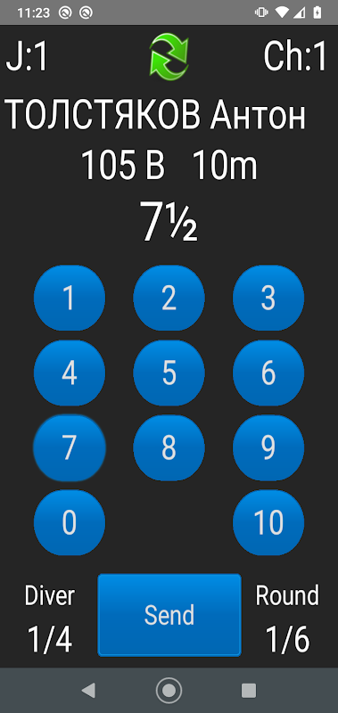 * แสดงชื่อของนักดำน้ำ, ดำน้ำจำนวนตำแหน่งและคณะกรรมการก่อนที่จะดำน้ำแต่ละ