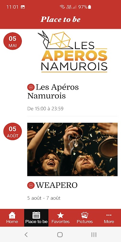 แอปพลิเคชั่นมือถือ APERITIF เป็นเครื่องมือแลกเปลี่ยนหลักที่ทุกคนสามารถค้นหาได้โดยการระบุตำแหน่งทางภูมิศาสตร์ของสถานประกอบการที่เป็นสมาชิกของสหพันธ์และกิจกรรมที่ให้ข้อได้เปรียบเหล่านี้แก่ Compagnons de l'Apéritif