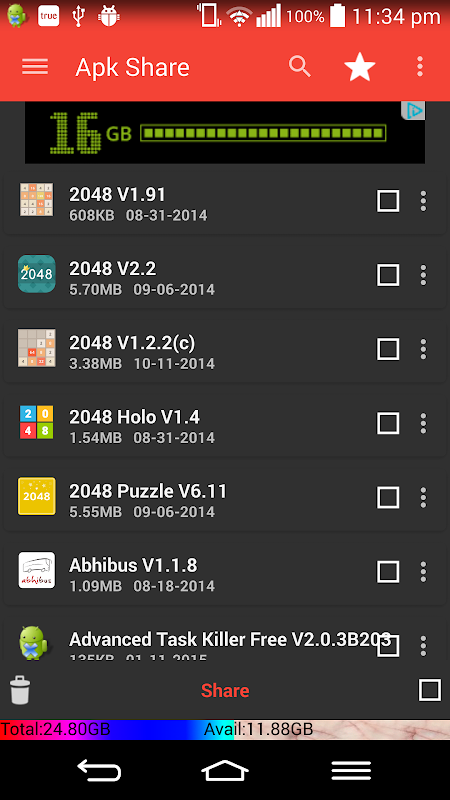This is the only app in market to share both app apk file or the link.