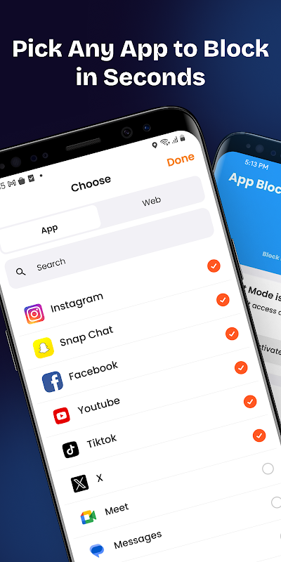 - การบล็อกแอปที่ปรับแต่งได้: เลือกแอปที่จะบล็อกหรือจำกัด ไม่ว่าจะเป็นเกม โซเชียลมีเดีย หรือการเสียเวลาอื่นๆ คุณสามารถควบคุมได้อย่างเต็มที่ว่าจะบล็อกอะไรและเมื่อใด ทำให้ตัวบล็อกแอปเป็นหนึ่งในเครื่องมือบล็อกและจำกัดแอปที่ยืดหยุ่นที่สุดที่มีอยู่