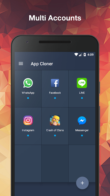 "App Cloner" is designed for users who log in more than multi Accounts of One App with only One Phone, while data of your main account and other account are in parallel and separate storage.