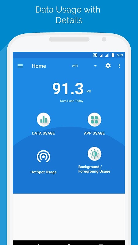 App Data Usage displays data usage per app, check hotspot usage, background and foreground App usage.