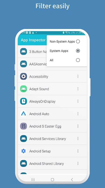 คุณสามารถรับข้อมูลโดยละเอียดเกี่ยวกับแอปที่ติดตั้ง รวมถึงบันทึกไอคอนของแอปใดๆ ในอุปกรณ์ของคุณ และถอนการติดตั้งแอปที่ไม่ใช่ระบบได้