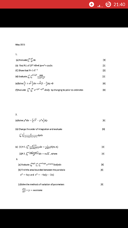 For the benefit of engineering students, we have also included University Questions as images. The images are large and the text is visible within the app screen. The Applied Math app also is useful for Interview questions that engineering students could require at some point of time, before a quiz or a unit test examination. These questions have been asked across several examinations and can be viewed offline.