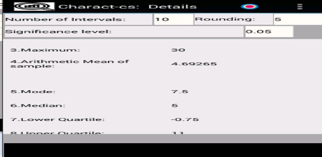 แอปพลิเคชั่นออกแบบมาเพื่อจัดเก็บ (แก้ไข ลบ เปลี่ยนชื่อ) ตัวอย่างของตัวแปรสุ่ม เพื่อคำนวณลักษณะทางสถิติพื้นฐานของพวกมันเป็น: -ค่าเฉลี่ย; - ส่วนเบี่ยงเบนมาตรฐาน; - ความเบ้และความโด่ง; - เพื่อคำนวณช่วงความเชื่อมั่นของค่าเฉลี่ย - ความแปรปรวนและส่วนเบี่ยงเบนมาตรฐาน - ตรวจสอบว่าตัวอย่างมาจากตัวแปรสุ่มแบบปกติหรือแบบกระจายสม่ำเสมอโดยใช้เกณฑ์ของเพียร์สัน - ตรวจสอบว่าตัวอย่างมาจากตัวแปรสุ่มแบบปกติ สม่ำเสมอและแบบทวีคูณโดยใช้เกณฑ์ของ Kolmogorov-Smirnov - และศูนย์ความเบ้และความโด่ง; - การทดสอบฟังก์ชันของสมมติฐานที่เกี่ยวข้องกับค่าเฉลี่ยและส่วนเบี่ยงเบนมาตรฐานและอื่นๆ