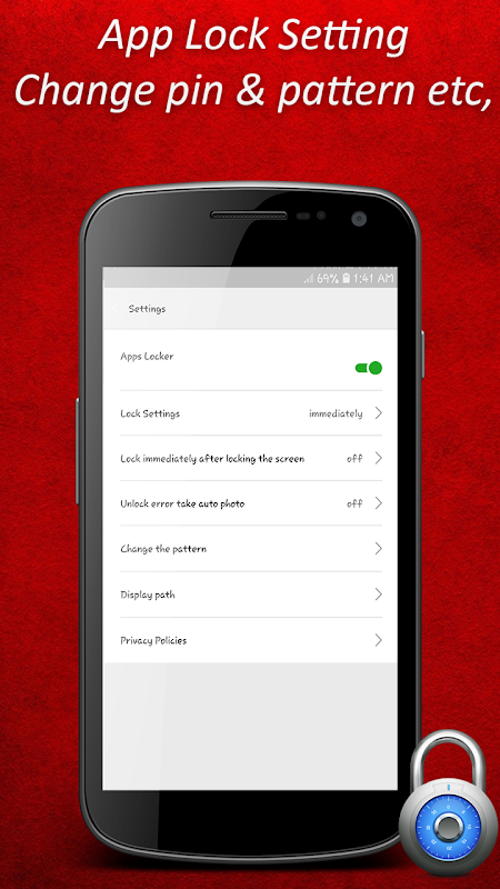 Apps Locker เป็นแอปพลิเคชั่นที่ใช้งานได้จริงสำหรับผู้ใช้ Android แอพพลิเคชั่นล็อคเกอร์เป็นอุปกรณ์เสริมสำหรับแอพพลิเคชั่นสำหรับ Android ที่ใช้งานแอพพลิเคชั่น verrouiller, รูปถ่ายปลอมและภาพอื่น ๆ Protégezจาดconfidentialité et protégezจาด vie Privee avec รหัส PIN ยกเลิก et verrou สหประชาชาติแม่ลาย