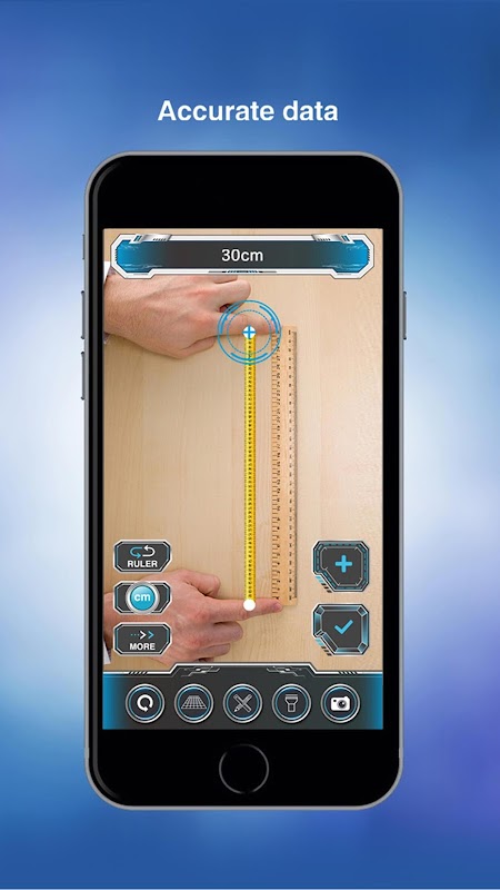 Measure real things using your phone, just point and tap to get the size of an object. With AR ruler you always have a ruler in your pocket!