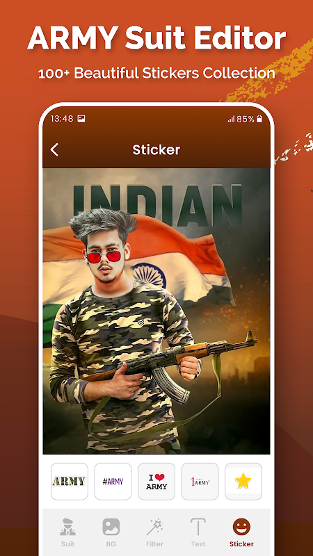 บรรณาธิการชุดทหารของเด็กหญิงและเด็กชายของอินเดียเป็นหนึ่งในแอพสมาร์ทโฟนที่ดีที่สุดที่มีชุดทหารชายมากกว่า 50 ชุดและชุดทหารอินเดียหญิงก็มีให้เช่นกัน แอพแต่งรูปชุดกองทัพชายเป็นหนึ่งในแอพกรอบรูปตำรวจอินเดียที่ดีที่สุด