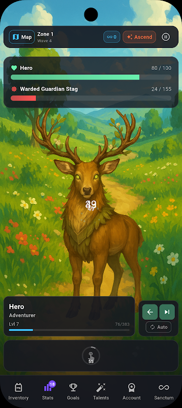 Ascend: Hero Clicker คือเกม RPG แนว Idle ที่ฮีโร่ของคุณจะต่อสู้อย่างไม่หยุดยั้ง และคุณจะกระโดดเข้าไปพร้อมกับการแตะและทักษะที่เหมาะเจาะในจังหวะที่เหมาะสมเพื่อกำจัดศัตรูที่แข็งแกร่ง เล่นได้หนึ่งนาทีหรือหนึ่งชั่วโมง ไม่ว่าจะเล่นแบบไหน คุณก็จะได้เดินหน้าต่อไปเสมอ