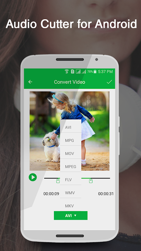 Audio Cutter for Android app to cut or trim MP3, WAV, AAC, and AMR audio files .