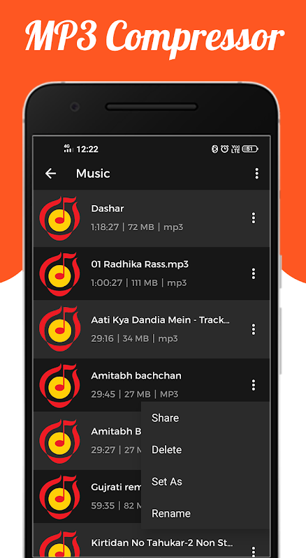แอพ Audio Compressor ลดขนาดของเสียงด้วยการประนีประนอมในคุณภาพบิตเรต แอพคอมเพรสเซอร์ MP3 ช่วยให้คุณสามารถบีบอัดเสียงที่คุณชื่นชอบและแชร์ในโซเชียลมีเดีย