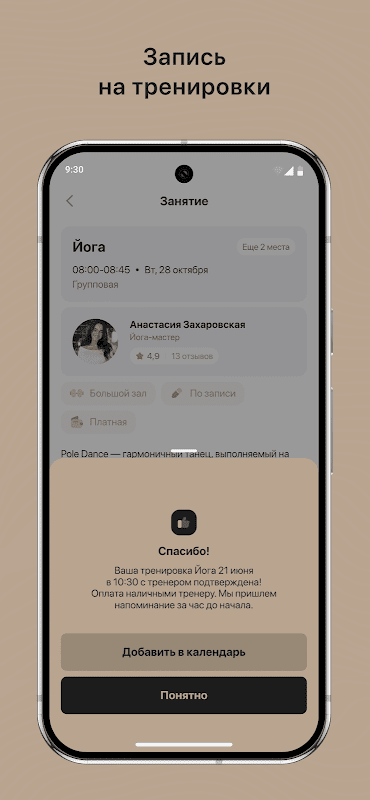 - Скорректированы статусы в "Моих записях" после регистрации на групповое или персональное занятие.