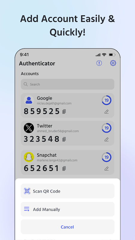 ตัวตรวจสอบสิทธิ์ 2FA นี้สร้างขึ้นสำหรับผู้ใช้ทุกคน ไม่ว่าจะเป็นผู้เริ่มต้นหรือผู้เชี่ยวชาญ โดยนำเสนอ UI ที่สะอาดและประสิทธิภาพที่ราบรื่นสำหรับการจัดการการตรวจสอบสิทธิ์ 2 ขั้นตอนและความปลอดภัยของบัญชีในที่เดียว