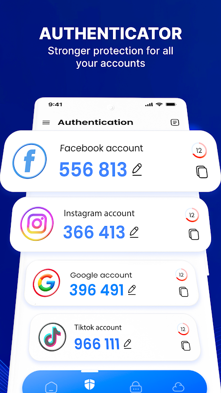 ลองใช้แอปตรวจสอบความถูกต้องที่ปลอดภัยนี้เพื่อปกป้องบัญชีสำคัญของคุณด้วยการแตะเพียงครั้งเดียว โดยใช้คำแนะนำการตรวจสอบสิทธิ์แบบสองปัจจัย (2FA) ที่เรียบง่ายและมีประสิทธิภาพ แอปนี้ช่วยให้ผู้ใช้ที่ต้องการความช่วยเหลือในการจดจำรหัสผ่านหรือค้นหารหัสผ่านที่รัดกุม