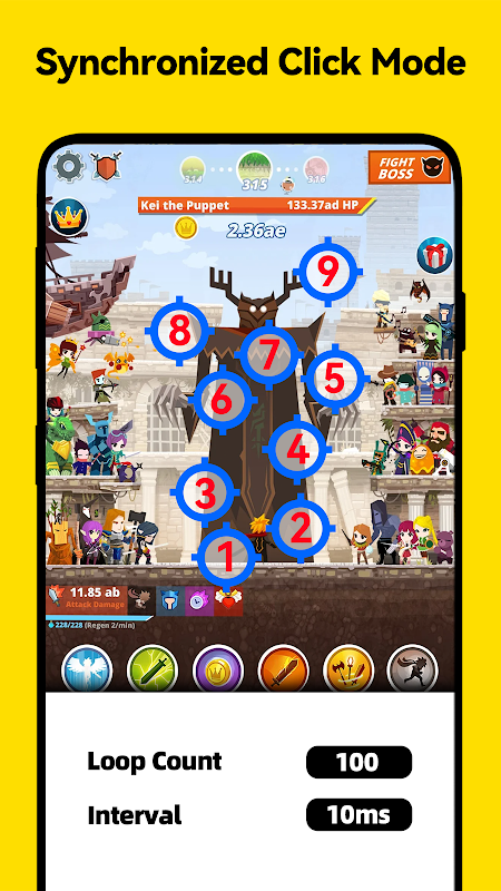· ฟังก์ชันการคลิกแบบต่อเนื่องและการคลิกแบบซิงโครไนซ์: ตัวคลิกอัตโนมัติของเรามีโหมดการคลิกสองโหมด: การคลิกแบบต่อเนื่องและการคลิกแบบซิงโครไนซ์ โหมดการคลิกแบบต่อเนื่องจะดำเนินการคลิกตามลำดับที่ตั้งไว้ล่วงหน้า ในขณะที่โหมดการคลิกแบบซิงโครไนซ์ทำให้สามารถคลิกพร้อมกันได้หลายตำแหน่ง ซึ่งช่วยปรับปรุงประสิทธิภาพ