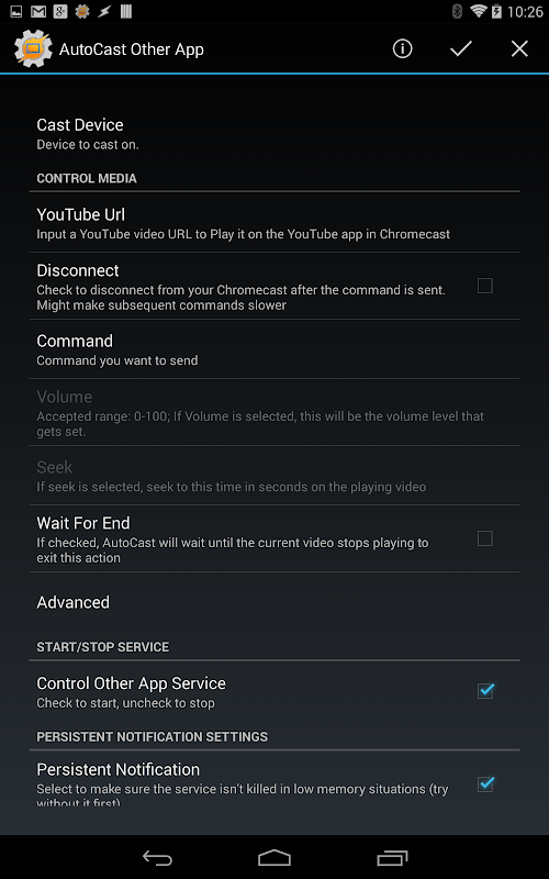 AutoCast เป็นปลั๊กอินทาซเค คุณจำเป็นต้องมีทาซเค (https://play.google.com/store/apps/details?id=net.dinglisch.android.taskerm) ติดตั้งให้ใช้มากที่สุดของคุณลักษณะของตนเพื่อโปรดทราบว่าก่อนที่จะใช้