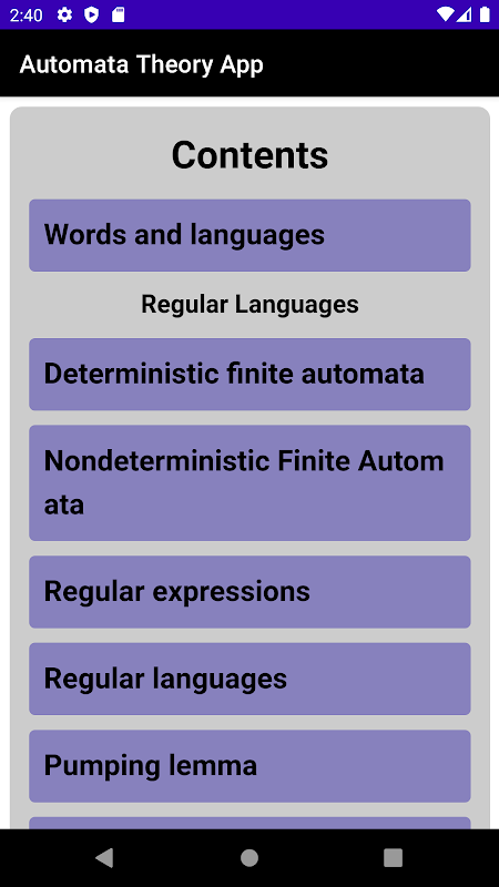แอพนี้แสดงสรุปย่อของวิชาที่สอนในทฤษฎีออโตมาตะ