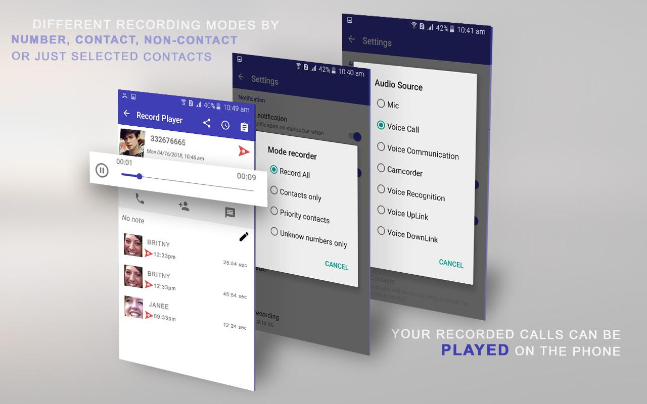 – 100% Safe with private mode, set password to listen or unlock the recorded voice calls