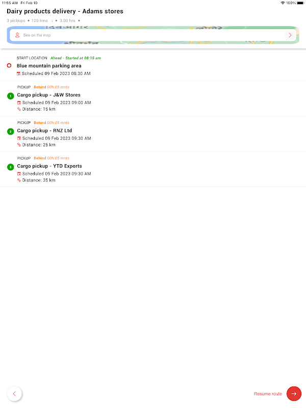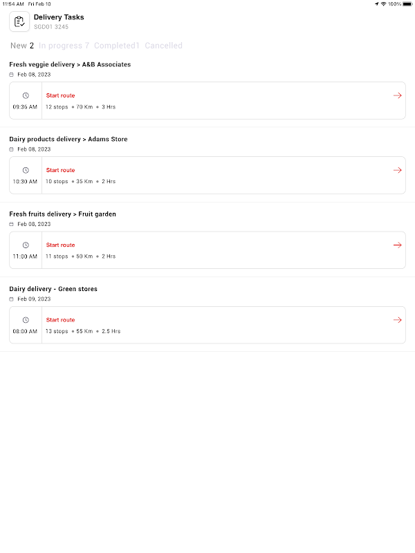 ให้ข้อมูลเกี่ยวกับงานตามกำหนดเวลา คำแนะนำในการจัดส่ง และเส้นทางที่ปรับให้เหมาะสม นอกจากนี้ยังสามารถเข้าถึงสถานที่รับ / จัดส่งพร้อมกับวันที่และเวลาที่มาถึงของการจัดส่งเหล่านั้น